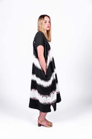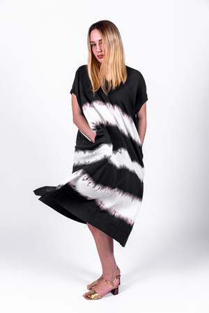 Atelier Delphine was created in March 2011 out of a desire to craft romantic loungewear for the modern woman. Japanese designer Yuka Izutsu, now based in Los Angeles, founded the collectsion as a way to communicate her love of beautiful things and meticulous workmanship. Romantic yet effortlessly cool, the collectsion combines a unique choice of textured fabrics with relaxed silhouettes. - V-neckline - Short sleeves - Small slits detail on top back - Side seam pockets - Loose fit - 100% cotton gauze, imported from Japan - Shibori effect might vary for each style - Dry clean - Designed and made in USA