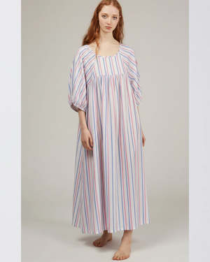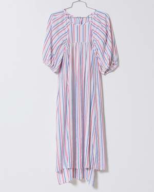 Atelier Delphine was created in March 2011 out of a desire to craft romantic loungewear for the modern woman. Japanese designer Yuka Izutsu, now based in Los Angeles, founded the collectsion as a way to communicate her love of beautiful things and meticulous workmanship. Romantic yet effortlessly cool, the collectsion combines a unique choice of textured fabrics with relaxed silhouettes. - Mid-length dress with full sleeves - Fitted bodice - Flowing skirt - Puffed sleeves - Square button closure along upper back - 65% viscose, 35% linen - Hand wash with cold water, lay flat to dry - Designed and made in the USA