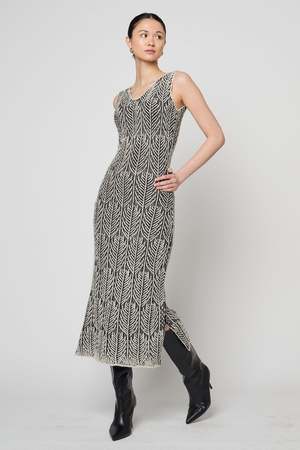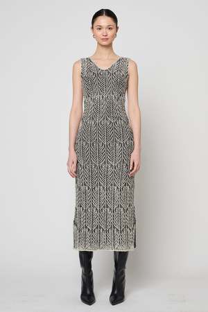 The Despina Dress brings effortless elegance in a luxurious alpaca blend, offering warmth with a soft, lightweight drape. Designed in a timeless black-and-pearl palette, it features a refined silhouette that seamlessly transitions from day to evening. Elevated yet versatile, its a wardrobe staple with modern sophistication.