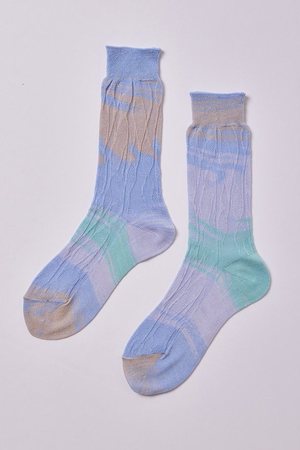 Unique Kasuri knit socks, soft and lightweight. Kasuri To dye the yarn with random color placements before knitting, it creates this unique and special color patterns. Sizing + Details - Made In Japan - One Size - Hand Wash With Cold Water, Hang Dry Only