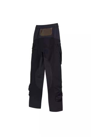 Trousers with multi-dimensional pockets featuring a hook closure at the waist, two side pockets, two knee pockets, and hidden pockets throughout.