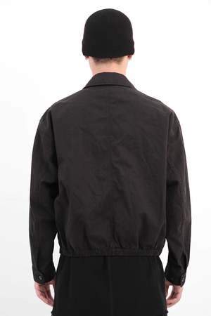 Attempt Coach Jacket Black. Long sleeves. Regular collar. Two side pockets. Elasticated details at bottom. Double zip closure with long puller detail. Soft textural cotton fabric.