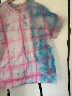 A classic, perfectly fitting USA cotton T-shirt, hand-dyed with natural materials and airbrushed in a rad plaid pattern. One of a kind.