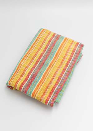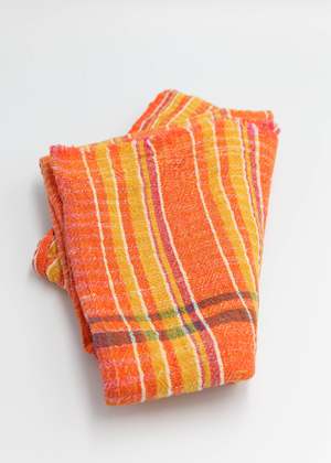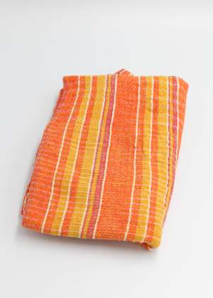 55 x 28 100% cotton khadi Cheerful stripe combinations in a lightweight weave make these good for fast drying towels, table cloths or a small throw at the beach. No two are exactly the same. *Khadi: fabric woven by hand of hand-spun yarn.