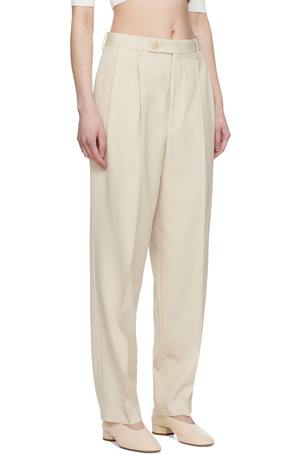 Tapered Super 140s wool gabardine trousers. - Belt loops - Four-pocket styling - Zip-fly - Pleats at front Supplier color: Ivory
