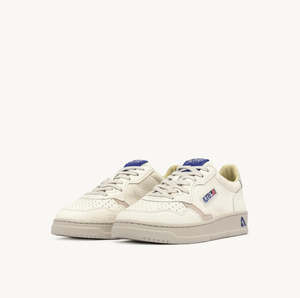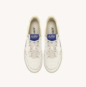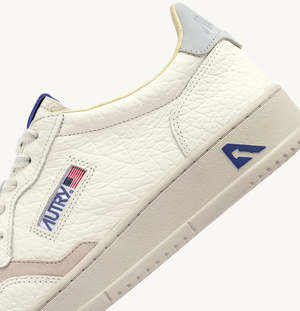 This Medalist sneakers is the quintessential everyday essential. Design blends inspiration from 1980s tennis style with quality materials and dynamic shapes, adapting to various looks while ensuring excellent comfort. These athletic shoes are crafted from white pebbled leather for a unique look and feel, finished with small suede details at the sides and micro-perforations on the toe for excellent breathability. The nubuck leather logo2 detail on the heel, the side Autry logo2 insert and the SPECIFICATIONS: - Solid color leather upper. - Micro-perforated toe. - Flat cotton laces. - Embroidery label detailing seamed at the tongue. - Padded collar. - Leather and cotton terry lining. - 2-cm raised sockliner in leather. - Rubber sole. - Height of sole: 2.5-3.5 cm - Upper: 95% leather, 5% suede - Lining: 40% leather, 50% terry, 10% nylon - Sole: 100% rubber