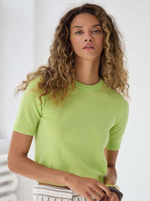 The Cropped S/S Crew Sweater by Autumn Cashmere is crafted from 100% cashmere in the Tennis Ball color. DESIGNER ID: R14587 Composition: 100% Cashmere Care: Dry clean Fit: True to size Imported.