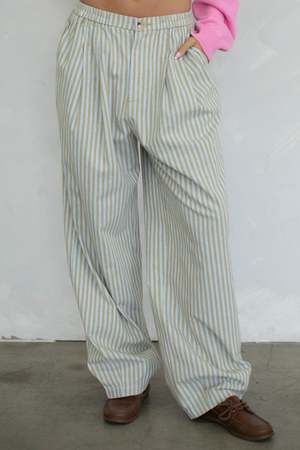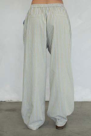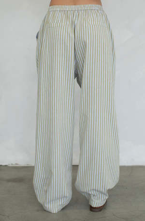 Laidback stripes with a modern twist. These wide-leg pants feature a relaxed silhouette and a soft color palette of sandy taupe and sky blue. Ideal for days when you want comfort with polishjust add a white tee, oversized blazer, or playful pop of color up top.