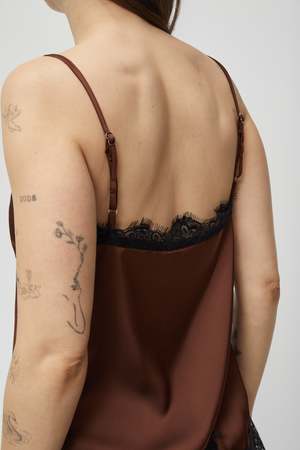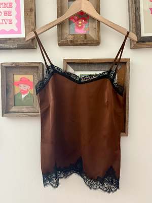 The Irina Top by Azalea is crafted from smooth, midweight satin designed to drape effortlessly against the body. Cut in a relaxed, sleeveless silhouette, this elevated essential features adjustable straps, a flattering V-neckline trimmed in delicate lace, and subtle bust seam detailing for a softly tailored shape. A lace-trimmed hem adds a romantic finish that makes it feel special enough for evenings yet easy enough for everyday styling. Pair it as a matching satin set with the Iona Skirt, style it with the Louisa Skirt for an elegant monochrome look, or keep it effortless with the Josephine Shorts for warm-weather dressing. From spring layering to summer events, this satin camisole transitions seamlessly from day to night. Details: Midweight satin fabric Sleeveless silhouette Adjustable straps V-neckline with lace trim Bust seam detailing Lace trim at hem Self: 100% Polyester Contrast: 100% Nylon A timeless satin tank designed for elevated everyday wear, vacation styling, and refined occasion dressing.