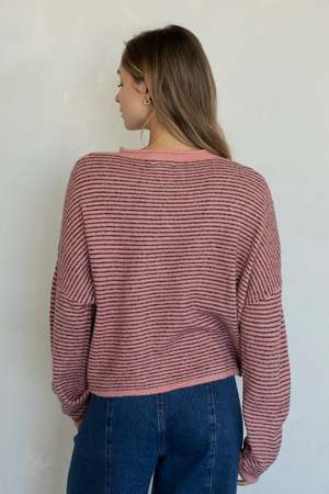 The Maisie Sweater in Mini Rose Stripe by Azalea is a seriously perfect cardiganoversized, comfy, soft, and lightweight. Youll want it in several colors. Soft lightweight button-down cardigan. Contents: 82% polyester, 15% acrylic, 3% spandex.