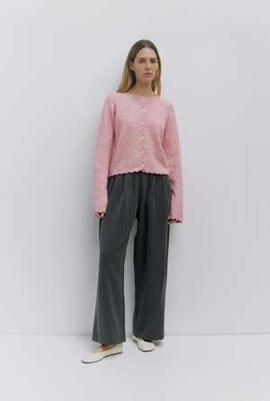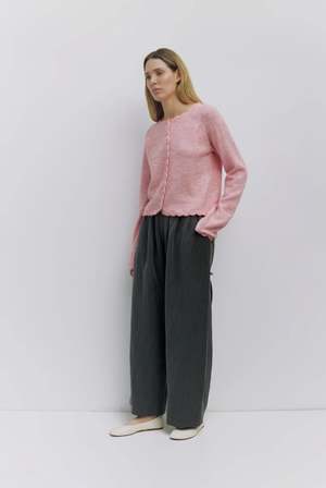 The Natalia Cardigan is crafted from a heavyweight knit with a relaxed, comfortable fit. Featuring raglan long sleeves, a crewneck, and a full button front, all finished with delicate scallop-edge detailing, it brings subtle, refined texture to a classic layering piece.