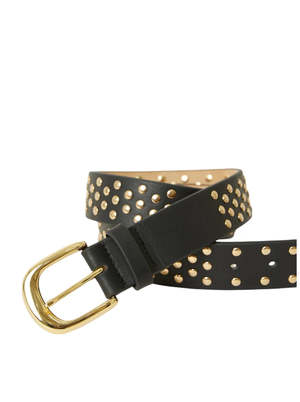 Elevate your looks this season with the Idris. Designed with a collectsion of small gold-tone studs along the genuine leather strap, this hip belt instantly upgrades any outfit. Featuring a classic buckle and leather keeper. DESIGNER ID: BH801-001LE COLOR: BLACK + GOLD COMPOSITION: 100% LEATHER FIT: HIP BELT - Hip Belt - Adjustment: 5 holes - Strap Width: 1.25'' - Small: 33'' - Medium: 35'' - Large: 37'' - Measurement is taken from the buckle point to the center hole. Imported
