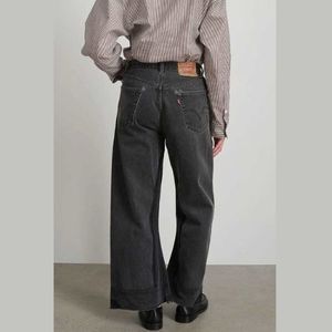 A cool, mid rise fit in antique denim. Each pair is one-of-a-kind and will vary in shade, caste, color and fade pattern as they are made with authentic vintage Levi's 505s and 517s, collectsed in the American West. These authentic Levi's have been customized by B SIDES JEANS and are not associated with Levi Strauss & Co. Reworked from two pair of vintage men's 517 or 505s, original shank and zip fly closures and copper rivet hardware finishing. Wide leg opening; inseam 29". Light to medium vintage wash with fade and imperfect character. 100% cotton. Made in USA.