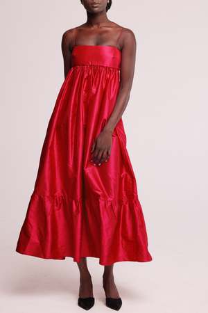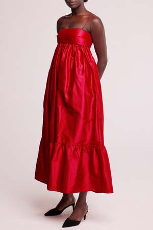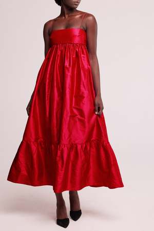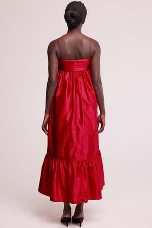 The Long Silk Ruffle Dress is a fancy cousin of the best-selling Big Silk Ruffle Dress. This beautiful billowing dress features a straight across bodice cut from the most luscious dupion silk, lined with a soft layer of padding to create structure and shape. The skirt is full with gathers and has pockets hidden in the side seams to hold your essentials. Designed to be ankle length, can be easily altered to suit your height. - Made in Australia - Side pockets - Beautiful raw silk fabric - Zip and hook and eye back closure - Padded structured top - Adjustable strap length (can be lengthened) - Total length from top of bust to hem: approx. 120cm - Model is 180cm / 5'10" tall and wears a size 8 Fabric & Care 100% Silk Medium weight raw silk fabric, slightly crunchy feel. Dry clean only. This product is made-to-order which means no waste.