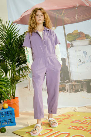 Our obsession with one and done outfits continues with the Organic Cotton Boiler Jumpsuit. Large double front pockets with twill tape details for all of the candy and chapstick that your heart desires. Best styled with the sleeves rolled up. - Fit: Loose Fit. - See measurement chart below - - Material: Organic Cotton Twill - Marta is a size S top and bottom and is wearing a S.