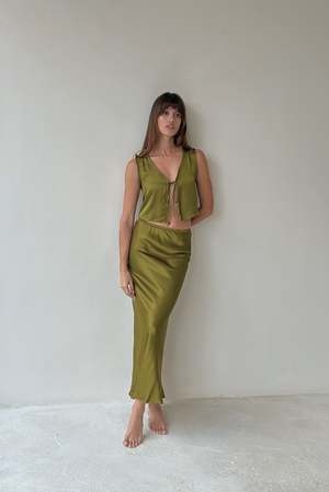 BAHHGOOSE SIGNATURE RIO TIE TOP The perfect top for any occasion. Pair with the RIO Skirt for an evening out or denim for casual daily wear. Lilian wears XS/S 50% rayon 50% viscose