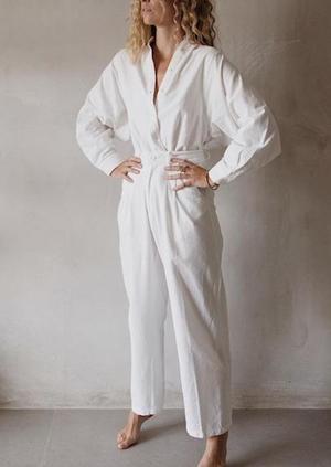 BAHHGOOSE SIGNATURE LINDA BLOUSE Details: Fitted button cuffs Button up entry collared neckline Model wears size S/M in white cotton QUESTIONS ABOUT SIZING / STYLING ? EMAIL bahhgoose@gmail.com