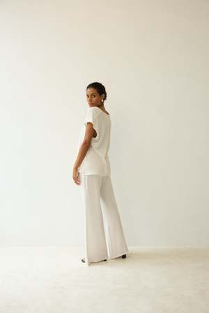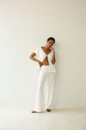 Crafted in our cotton linen jersey, a beautifully soft high-quality tee fabric. Oversized style, optional high or low rise fit, elastic waistband. Intended to style as a set with the COMF Tie Top. Carol wears XS/S. 58% linen 42% cotton.
