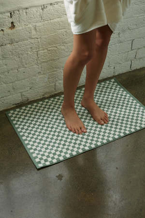 Product Details - Inspired by fine art, sculpture, architecture and colour theory, BAINA subtly disrupts the neutrality of the bathing space. Founded and designed in the Antipodes, and produced in Portugal using GOTS certified cotton, the brand produces modern organic cotton towels designed to elevate your bathing routine. - 100% Organic Cotton bath mat. Luxuriously soft, Beppu features a playful checkerboard print synonymous with the BAINA brand. This bath mat enriches your bathroom with a feeling of luxe and heritage. - Sage and Chalk. Weight: 950 gsm Size - 50 x 80cm Materials & Care - 100% Organic Cotton Designed in the Antipodes. Thoughtfully produced in Portugal. - 500gsm for softness, absorbency and quick dry time - BAINA towelling has been designed with permanence in mind. Please follow their Care Guide, so you can extend the longevity of your BAINA pieces, and minimise impact on the environment.