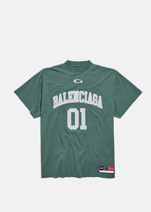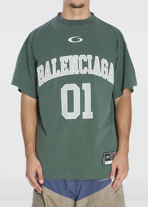 Cotton-blend oversized T-shirt in dark green with logo2 and number detail, short sleeves, and a round neck. 99% Cotton, 1% Elastane. Made in Italy.
