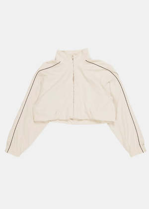 Cropped zip-up tracksuit jacket in cream with a high neck. Features elasticated cuffs and a front zip fastening. 100% Polyester. Made in Italy. Country of origin: Italy. Goat SKU: 850678 TTO44 9020.