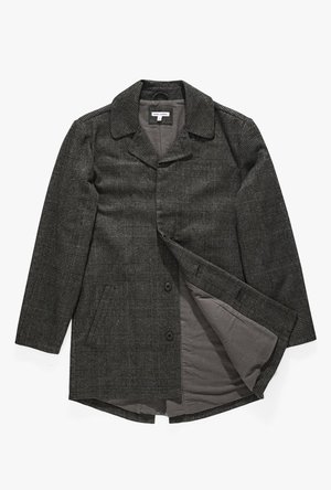 Banks Journal | Brooklyn Plaid Trench Jacket Flannel lined, coat styling, concealed button front closure, slanted welt pockets, recycled polyester woven labels. - 50% Wool, 50% Polyester outer; 100% Cotton Flannel lining - Imported