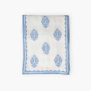 The Nila table runner is all about quiet detail and everyday beauty. Hand block printed using traditional techniques, it features our Nila motif, inspired by the water hyacinth flower. The pattern sits gracefully on a light base, framed with carefully considered borders that add structure without feeling heavy. Material: Linen Size: 90 x 14 in (for a standard 68 seater) What Makes It Special? Handmade by artisans using age-old block-printing techniques Highly absorbent, breathable and moisture-wicking Sustainably produced Please note: Each piece is handcrafted by skilled artisans, so slight variations in color and pattern are natural, and part of what makes it uniquely yours.