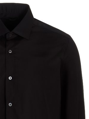 Cotton blend poplin shirt with button closure, long cuffed sleeves. Composition: 78% cotton 18% polyamide 4% elastane.