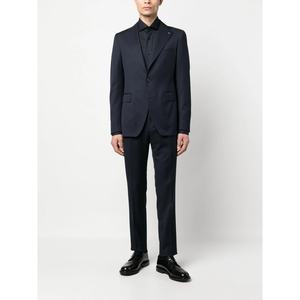 Men > Clothing > Shirts Prussian blue cotton blend shirt featuring a classic collar, front button fastening, long sleeves with buttoned cuffs, and a curved hem.