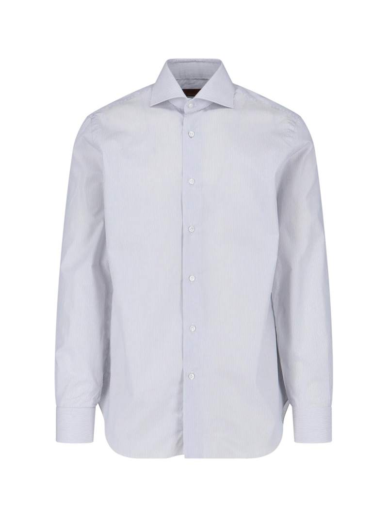 Men > Clothing > Shirts - Striped shirt by Barba Napoli in white cotton with a classic collar, button closure, and long sleeves. Composition: 100% Cotton