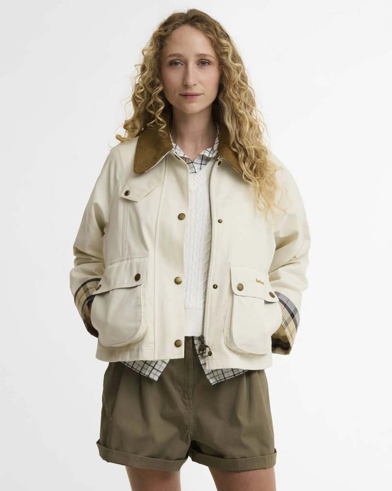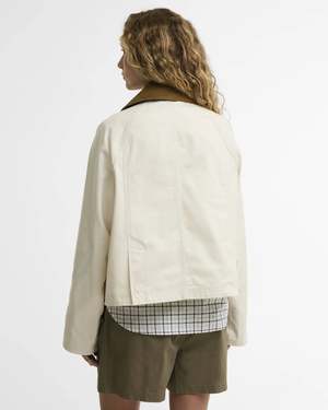 The Barbour Cropped Beadnell Casual Jacket is a regular-fit, shortened take on the classic Beadnell style. Crafted from 100% cotton, it features a detachable cord collar, tartan turn-up cuffs, and large bellow pockets as the focal point. Finished with subtle Barbour embroidery on the pocket flaps, it combines heritage detailing with a playful, cropped silhouette.