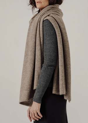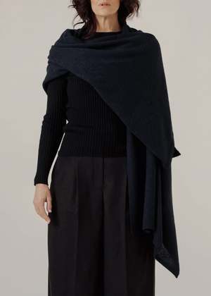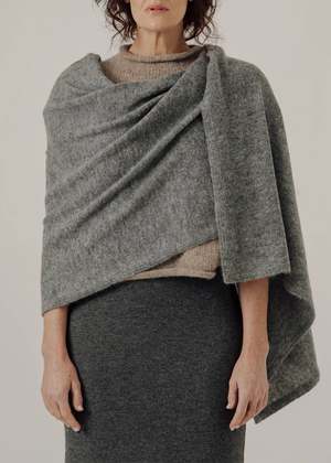 BARE Knitwear's Travel Wrap is crafted from the finest baby alpaca fibers and dyed with oeko-tex certified, low impact dyes. The Travel Wrap features a generous size that transitions effortlessly into a shawl or lap blanket, a lightweight jersey knit that makes it easy to pack into a tote and provides exceptional comfort and warmth without the bulk, and ribbed edge finishes. one size - 76.75" x 29.5" 100% baby alpaca dry clean ethically made in Lima, Peru