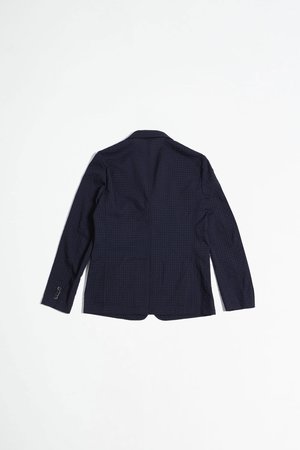 Jacket with a comfortable fit, three button fastening. Notch lapels. Non-functioning buttoned cuffs. Chest welt pocket and two front patch pockets. 93% Virgin Wool, 7% Polyamide Dry clean only Made in italy