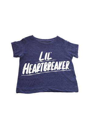 A Blue&Cream Baron Von Fancy Exclusive featuring 'Lil' Heartbreaker' graphic in the Baron Von Fancy signature font. - Color: Navy - 100% Japanese Cotton - Made in NYC - Machine Wash Cold Designer BARON VON FANCY