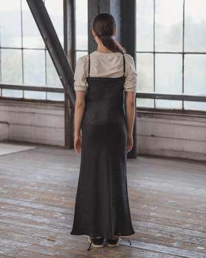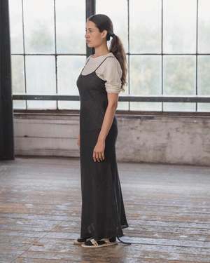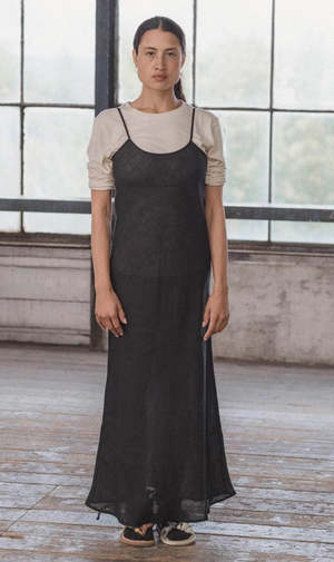 Sheer linen dress with thin adjustable straps and bias cut. Fits true to size. - 100% Linen - Made in Turkey - Model wears size Small - Hand wash cold/ hang dry