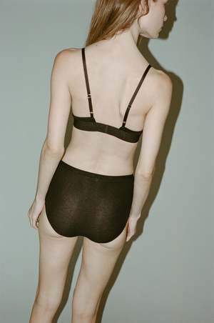 Baserange Highwaist Rib Bell Underwear in Black - Fine cotton rib underpant - Highwaist - Elastic trim at waist and leg - 91% Organic Cotton 9% Elastane - Made in Portugal