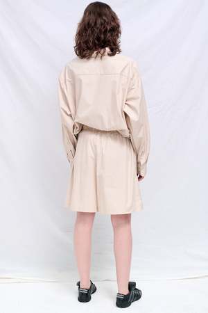 Brown Stripe Claude Shorts from Baserange. Poplin shorts with an elastic waistband and side seam pockets. 100% organic cotton. Made in Portugal.