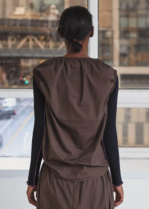 Organic cotton poplin top with an elasticated neck and armholes. Model wears a size S 100% Organic Cotton Made in Trkiye.
