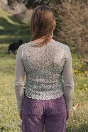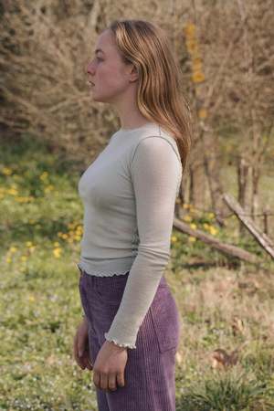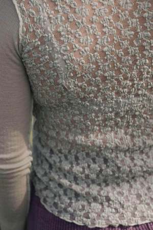 A fine wool long sleeve tee with a crewneck and lace detail on the back. Details: - 100% wool front and arms, back lace 46% organic cotton, 52% polyamide, 2% elastane - Made in Portugal
