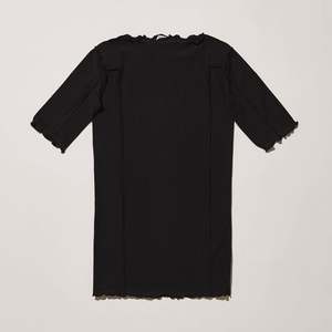 Organic cotton rib long sleeve boatneck with exposed contrast seams and lettuce edge at neckline and hems. Made in Portugal. Runs small, consider sizing up. Model wears a size S. Spun in India/Trkiye. Knitted in Portugal. Sewn in Portugal. Material: 91% Organic Cotton, 9% Elastane. Fiber origin: India/South Korea.
