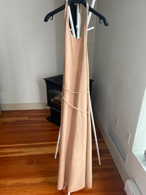 Wild silk wrap dress Halter neck Open back Ties at neck and waist True to size 100% Silk Size M equivalent to EU 38 Bust 33-36" Waist 28-30" Hips 38-40" Model wears size S