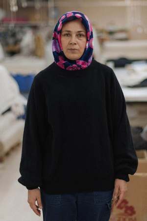 A recycled cashmere crewneck sweater from Baserange. Features a raglan sleeve and finished with a ribbed collar, cuffs, and hem. Designed to be slightly oversized, take your usual size for a relaxed fit. Model wears a size XS/S. 95% Recycled Cashmere, 5% Wool Hand wash in cool water with wool soap, lay flat to dry. Made in France.