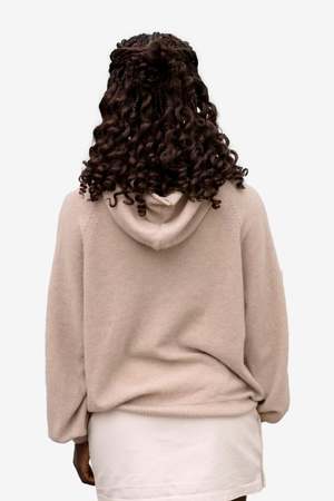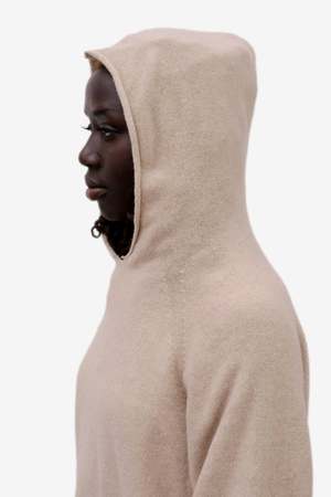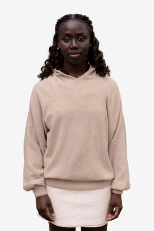 The Soar Hoodie by Baserange features comfortable raglan sleeves with ribbed cuffs. Style code: PUSOH-RC-SP26. Color: Omi Sand.