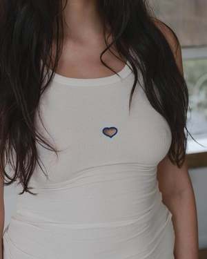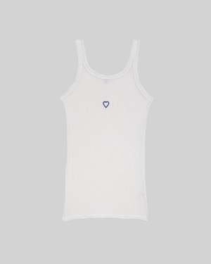 The Heart Tank is an organic cotton rib tank with scoop neck front and back featuring blue stitching around a heart cut out at center front. - 91% Organic cotton 9% Elastane - Made in Portugal - Model wears a size S Size Guide XSMALL: Bust 29.9" Waist 23.6" Hips 34.6" SMALL: Bust 31.5" Waist 25.6" Hips 36.2" MEDIUM: Bust 33.1" Waist 27.6" Hips 37.8" LARGE: Bust 34.6" Waist 29.5" Hips 40.9"
