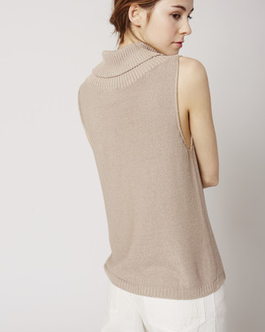 French brand Baserange is well-known for making everlasting basic wear both. The organic and sustainable line offers an array of timeless pieces that are easy to mix and match, to wear to lounge at home, pieces to layer up, or intimates; all soon to become your favorite basics. - Fold over turtleneck - Sleeveless - Ribbed neckline and bottom hem - Rolled finish arm holes - Hip length - Relaxed fit - Soft knitted yarn, slightly shiny - 100% Viscose - Made in France