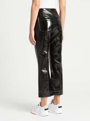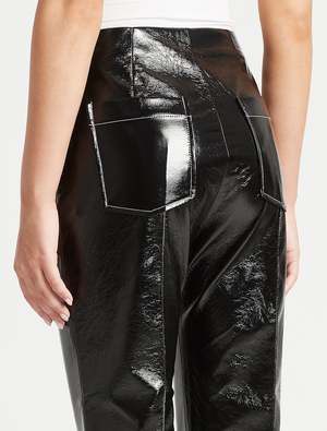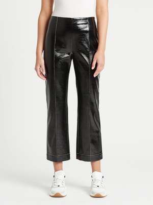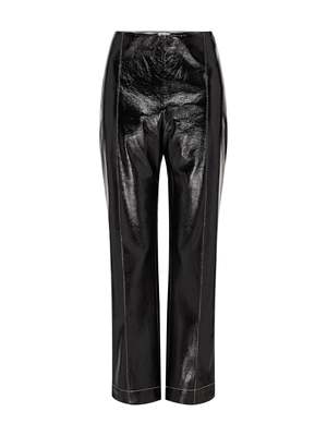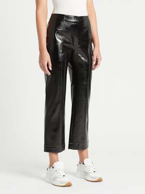 Style meets elegance with the Baum Und Pferdgarten Nardea Pant in Black. These patent cropped trousers feature a shiny lacquered finish, two patch pockets on the back, contrast stitching detail and are finished with a subtle flare at the hem. Team with the Baum Und Pferdgarten Bracca Jacket for the full look or simply style with a white crew neck tee and classic slides for no fuss style. ---- FABRIC OR COMPOSITION The Baum Und Pferdgarten Nardea Pant in Black are made from 100% Polyester with a 100% Polyurethane lining ---- SIZE AND FIT The Baum Und Pferdgarten Nardea Pant in Black fits true to size Measurements taken from a Size 36 FR Rise: 27.5cm / 10.8inches Outseam: 93.5cm / 36.8inches Model is wearing a Size 36FR, Sarah is 178cm / 59 Bust 83cm / 32 1/4 in /// Waist 66cm / 26 in /// Hips 89.5cm / 25 in ---- ---- BRAND Launched in 1999 and based in Copenhagen, Baum Und Pferdgarten perfectly blends playful sensibility with edgy, laid back street style. Shop Australia's most premium range of curated, must-have pieces from Baum Und Pferdgarten and nail the cool girl chic look.