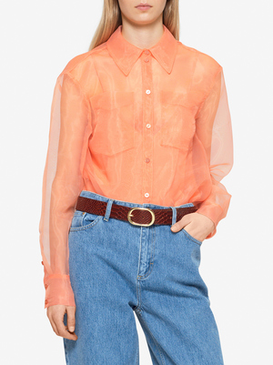 Take feminine chic to an elevated level in the Minty Shirt in Coral Rose by Danish label Baum Und Pferdgarten. This loose fitted silhouette shirt is crafted in sheer organza and features a classic collar with a button down fastening, blouson sleeves and two chest pockets with finishes of a rounded hemline. Accompanied you will find a slip camisole that is perfect for coverage and allows the shirt to pair back with your favourite denim or team with a leather pant and boots for a look that will take you from day to night.