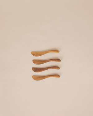 Perfect little spreading knives for entertaining. Set of four. Details: 4.75 in, sold as set of 4 Teak Wood Handmade from sustainably-sourced wood from Thailand.