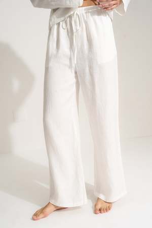 The 100% linen Drawstring Pant is effortless yet elevated. Designed for lounging and travel alike, these easy pull-on pants move seamlessly from the airplane to the pool, hammock, or couch. Type: Pants