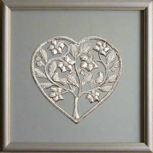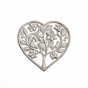 A Full Heart is a one-of-a-kind Haitian metal art masterpiece made for indoor and outdoor decorative use. Gorgeously detailed, it features a unique floral love-themed design that makes a visual statement in any home, patio, or garden area. - Frame not included. - Fair Trade Federation-certified Haitian metal art - Steel metal art coated with a protective gloss varnish - Dimensions: 15" L x 14" W - Handcrafted at the Village Artistique de Noailles in Croix-des-Bouquets, Haiti by Haitian metal artists Haitian metal art is a folk tradition dating back to the mid-20th century, transforming recycled steel oil drums into ornate artwork. As each piece is handmade, slight variations add to its unique character and value.